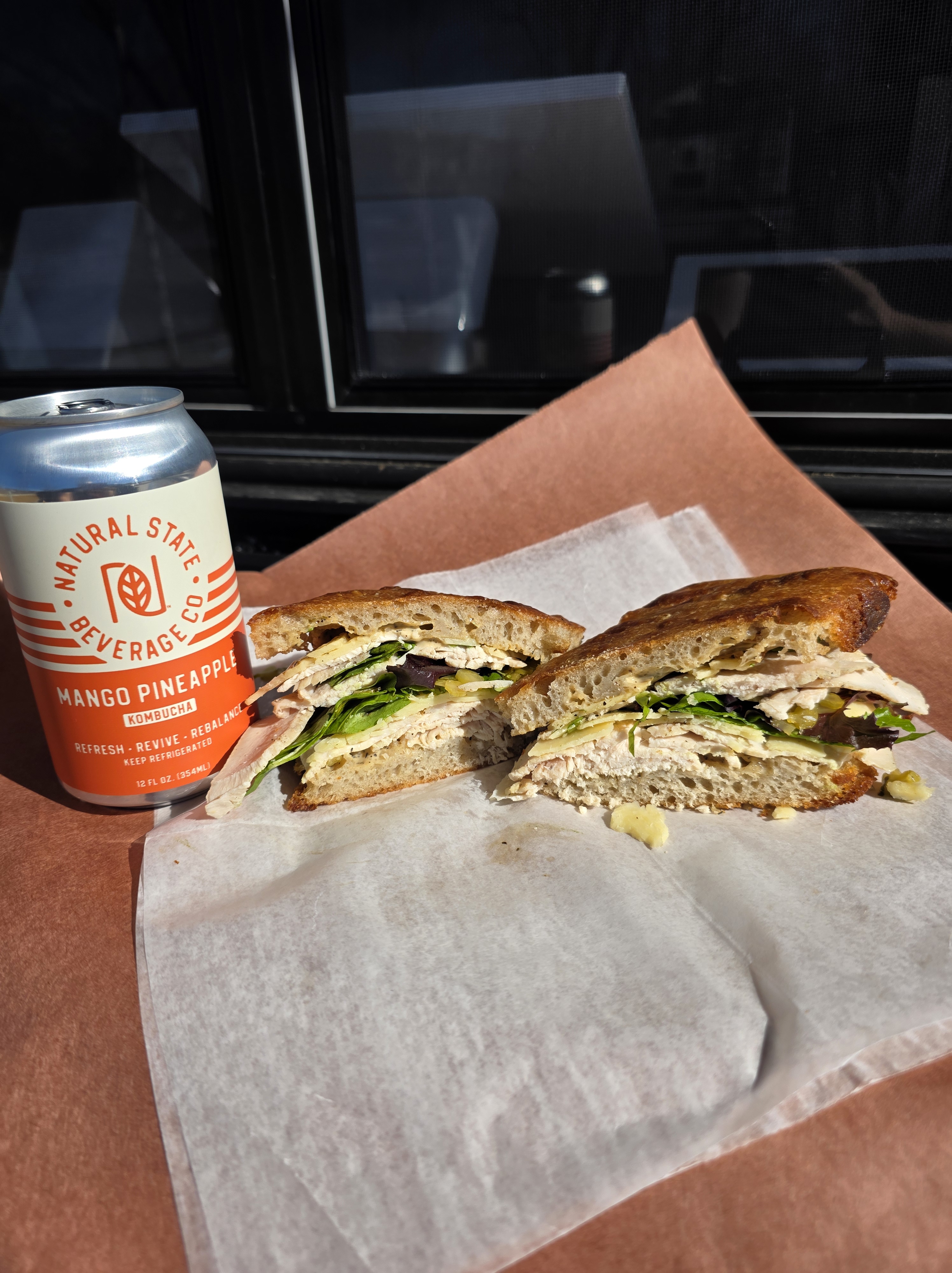 We use house made focaccia on all of our sandwiches. Gluten free bread available + $3
